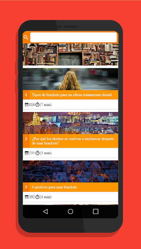用於教學目的的應用程序,其中包含帶有搜索引擎選項的文章列表。