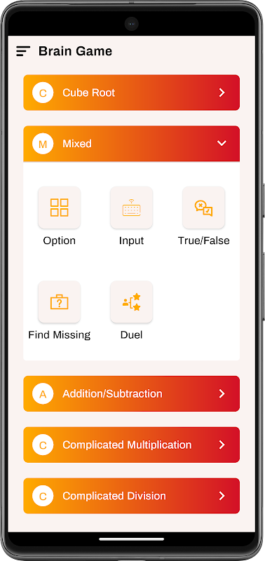參與各種刺激的數學測驗,旨在鍛鍊大腦的不同區域。從基本算術到複雜的問題解決,Brain Game 提供了各種各樣的挑戰,讓您保持警惕。