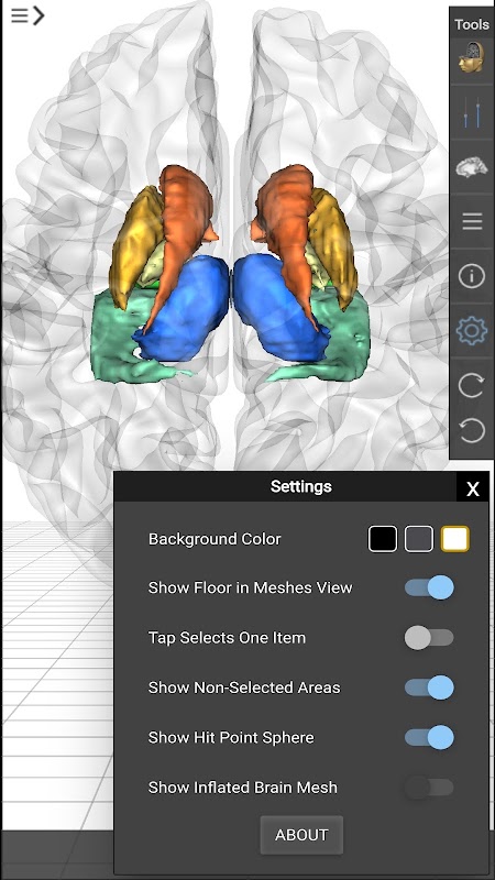 *從底部的標籤欄按鈕選擇3D模型(左/右/兩個大腦半球,頭)。
