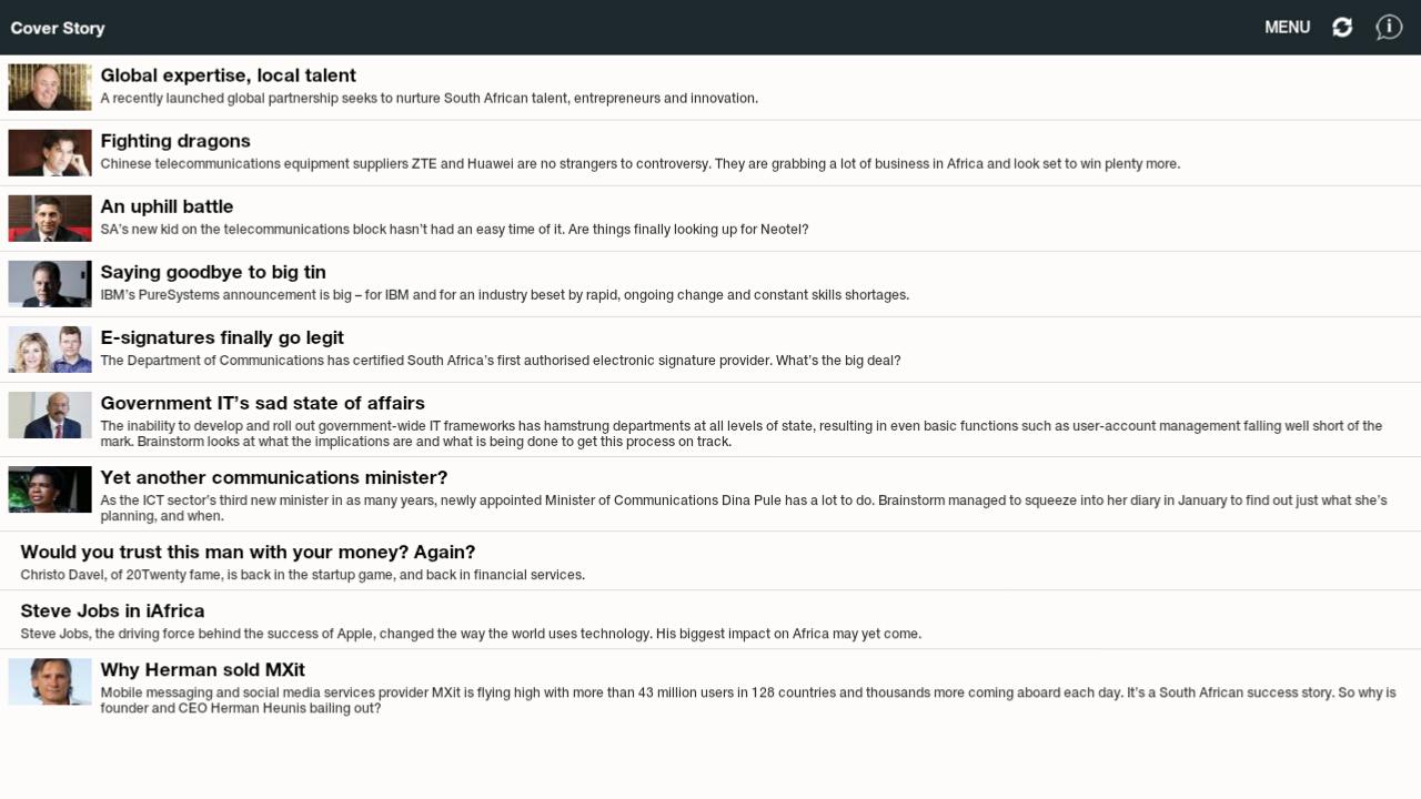 ITWeb Brainstorm magazine news reader with included CIO Directory