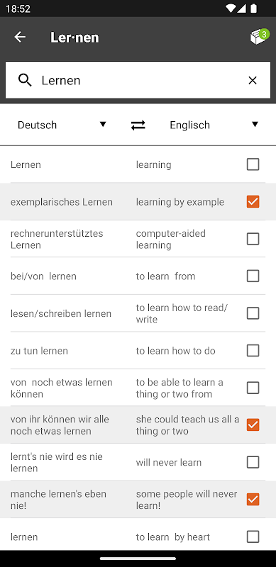 考試結束後,您切換到 Leitner 的長期記憶模式,以便將您的新鮮知識永久地固定在您的記憶中,例如州考試或高中文憑。