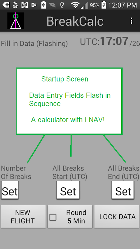自動建議“新飛行”刷新數據,消除使用以前的飛行數據的可能性。 BreakCalc信息通過電源循環和其他應用程序的使用仍然存在。