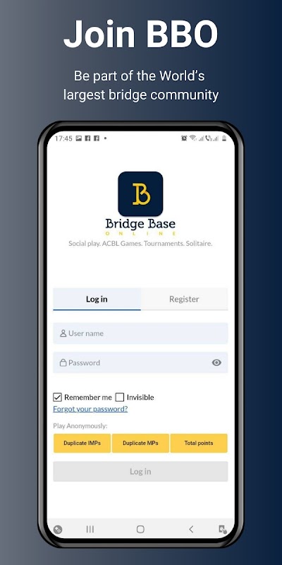 Play contract bridge on Bridge Base Online (BBO), the world’s largest bridge site. Practice with bots or log in and play with other people. Compete in ACBL tournaments against players at your level. Watch the world’s finest players compete, or just kibitz at popular tables.