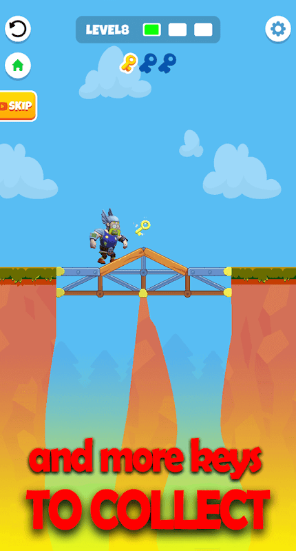Select the right wood and place it correctly so the hero can cross the bridge safely try to solve bridge builder puzzles now !