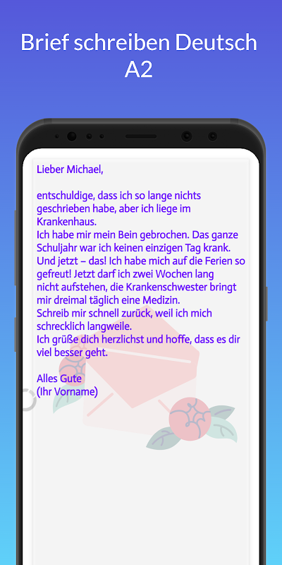 您可以寫個人信件作為例子,並報告經驗和印象。在這個應用程序中,您將能夠寫一封正式的信。考試字母的最佳示例已逐步給出。 Brief schreiben Deutsch A2 是一款獨特的應用程序,適用於想要學習 Deutsch Brief schreiben 的學習者。