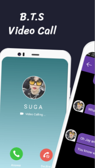 BTS Army not only owns BTS wallpapers, plays BTS game, use BTS ringtones but also call with BTS fake Video call and chat App. It is so awesome that make a call and see BTS Members such as Jin, J-Hope, Jimin, Jungkook, RM, V, Suga immediately!