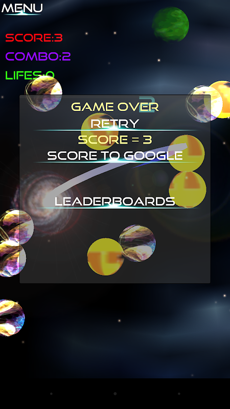 Ambientado en el espacio y con gráficos casi full hd tendrás que mover tu dedo a toda velocidad cazando las burbujas por la pantalla.