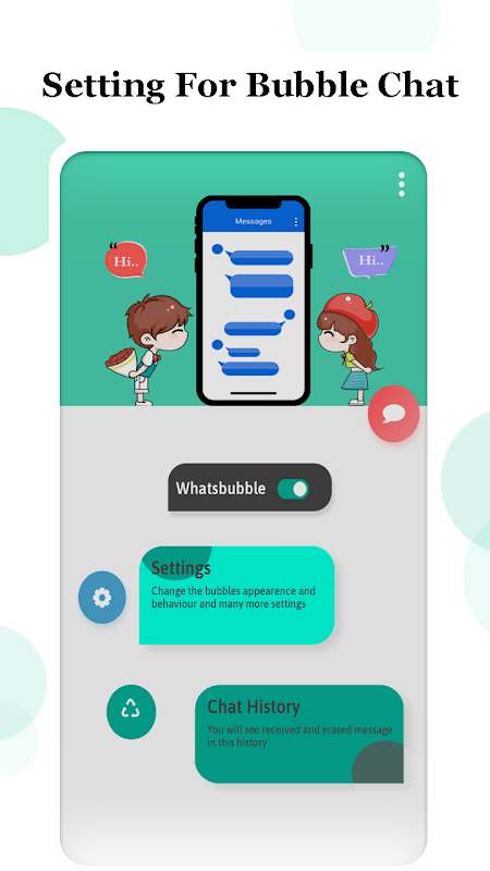 用於聊天應用程序的 WA 泡泡是一款泡泡應用短信,它添加了一些額外的功能,使其在競爭中脫穎而出。泡泡聊天非常用戶友好,只需安裝它並完成說明和所有設置即可開始使用此短信泡泡應用程序。