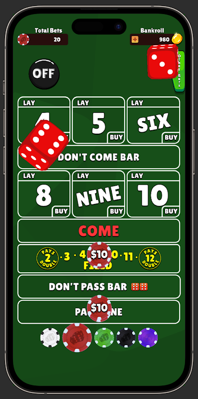 Bubble Craps 透過獨特的街機風格,將經典賭場雙骰子的刺激帶到您的指尖。遊戲具有快節奏的遊戲玩法、直覺的觸控控制和現代數位雙骰子賭桌,專為初學者和經驗豐富的玩家而設計。