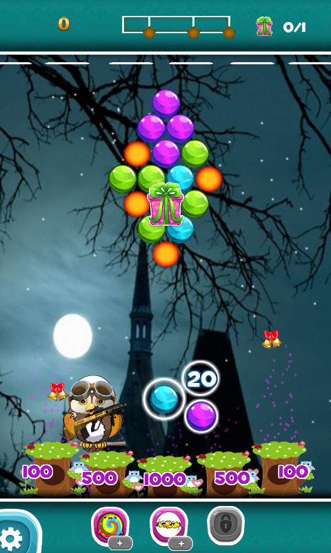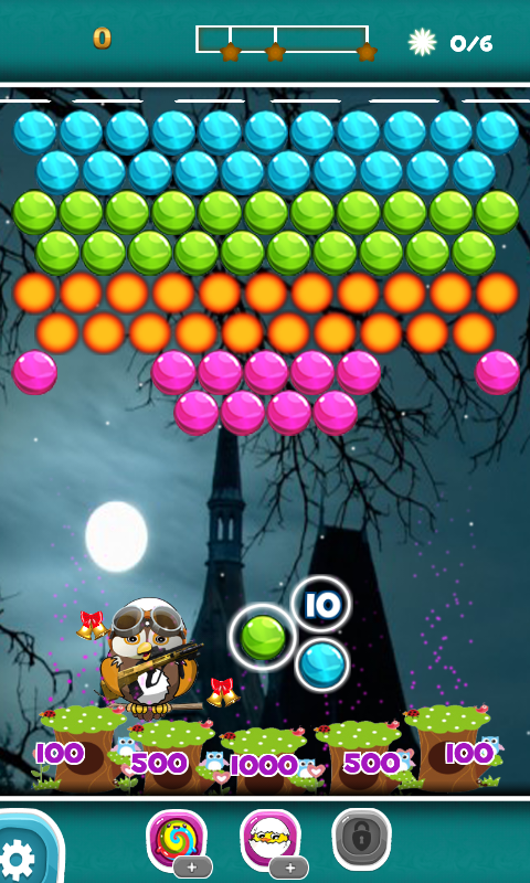 Destroy the bubbles of the same color by tapping one of them if they are in blocks of 3 or more. A block can be formed in minimum of 3 bubble.
