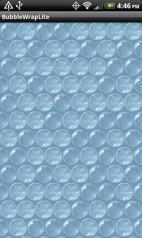 The award winning webos BubbleWrapLite app comes to Android and gets even better! Endless sheets of bubblewrap to pop, includes choices of popping sounds, bubble sizes, whole/partial bubbles and the ability to pop bubbles by swinging the phone forward.