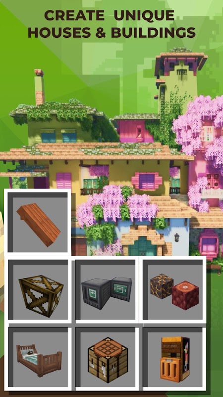 使用強大的建築編輯器來實現您的設計和工程項目。功能與創意組件的獨特組合將有助於以原始方式裝飾房屋、城堡和橋樑,形成新的建築理念,並立即將它們變為現實。創建一個真正的堡壘,它將成為抵禦攻擊性暴徒的絕佳避難所,並為虛擬地圖的建築群錦上添花。建造由幾層樓組成的豪華豪宅,並將它們隱藏在高高的柵欄後面。改變紋理和形狀,掌握新機制,探索和創造令人驚嘆的世界。設計主題內飾,並用現代像素家具填充寬敞或舒適的房間。為您的角色創造舒適的住宿環境並使用虛擬建築藝術。嘗試積木,建造現代高科技多層建築或中世紀城堡的綜合體。發揮空間和額外的功能。在應用程序中,您將找到一個特殊指南,其中包含簡單易懂的說明,可快速連接到您感興趣的服務器並單擊幾下即可更改遊戲主題。訪問擴展的服務器列表將有助於使標準遊戲玩法多樣化並享受多人模式的所有好處