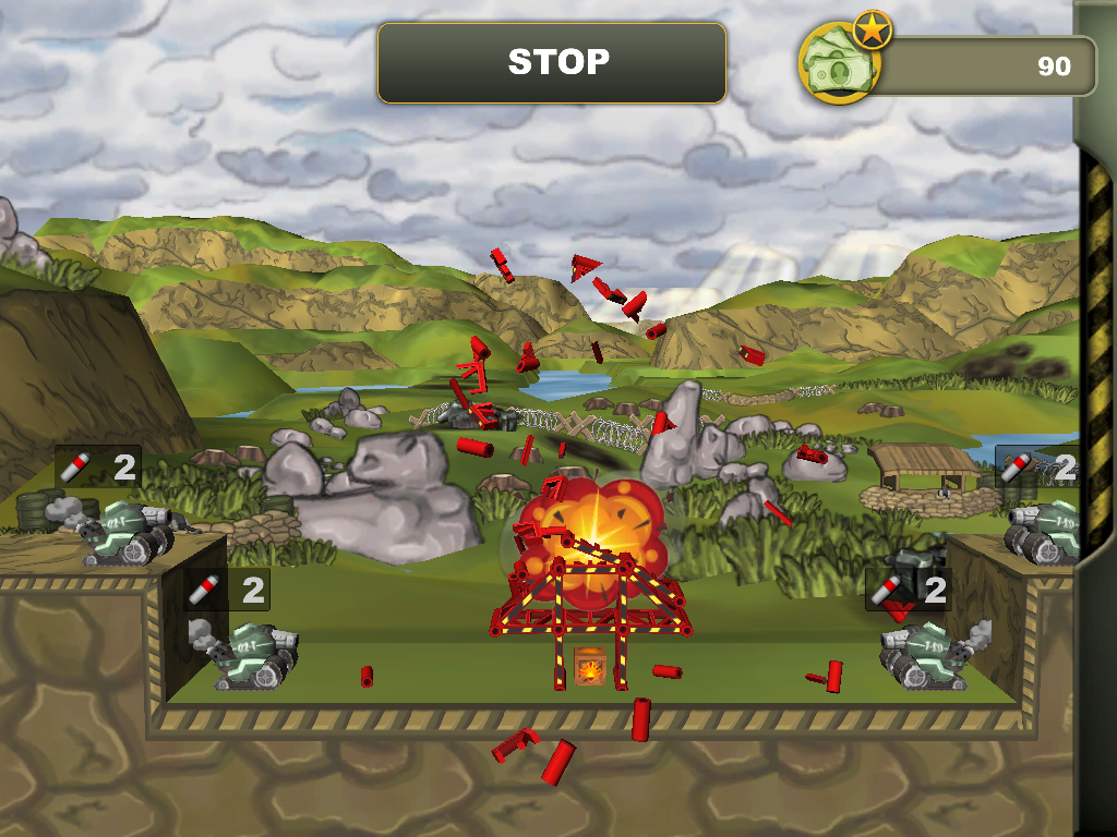 在沙坑構造您構建抵禦敵人的攻擊強掩體。你必須通過45個關卡,並在5個環境,包括沙漠,森林,海灘,山和城遺址建立彈性掩體,因為下一攻擊波已經展開!你就會知道,如果你的掩體是足夠強大的時候,攻擊敵人或者用他們的火砲,坦克或炸彈。