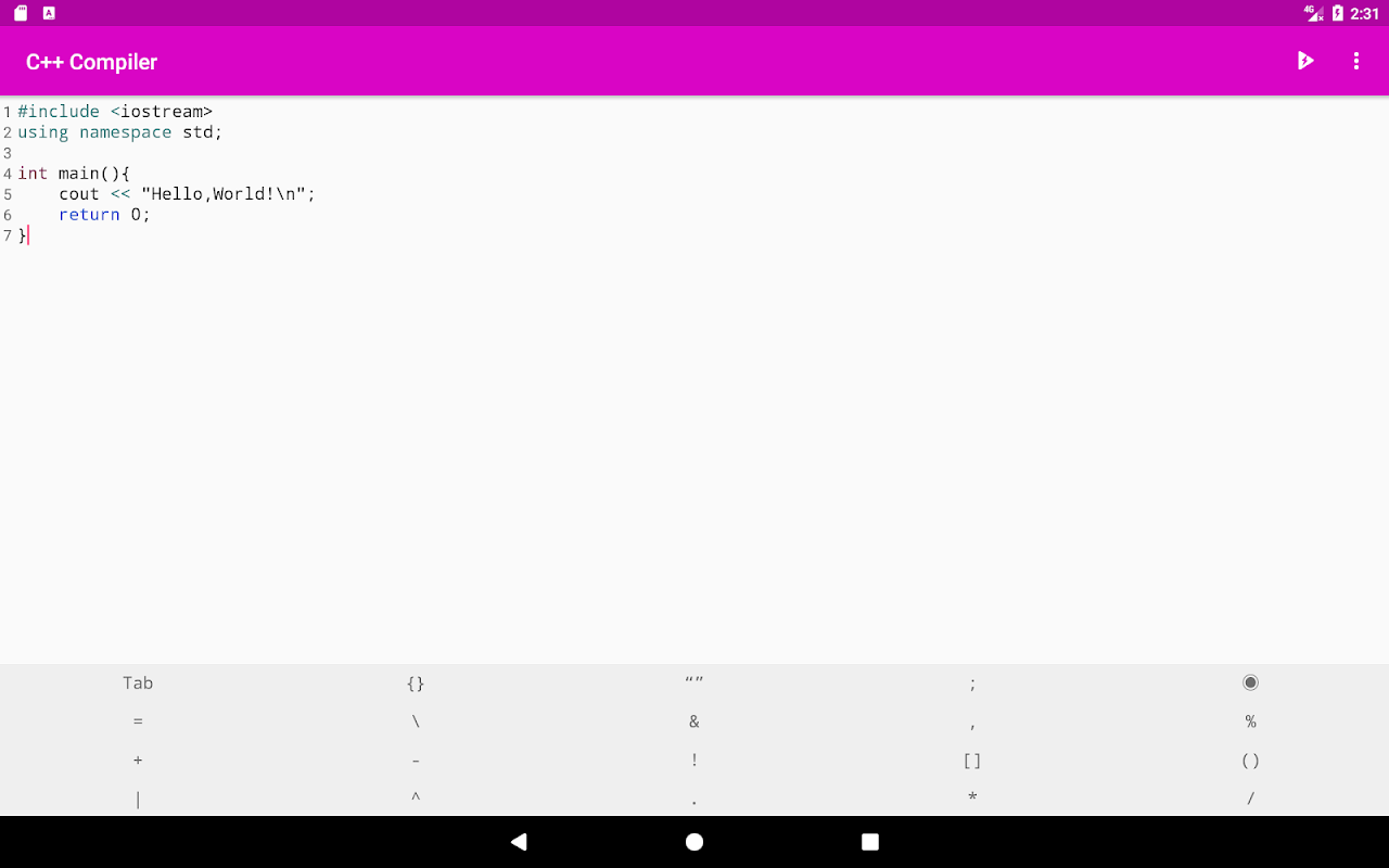 C++编译器是一款简介明快的APP,主要为C++初学者提供核心的功能,能够随手验证一些小程序。该软件支持直接从文件管理器中打开代码文件,方便用户浏览查看。