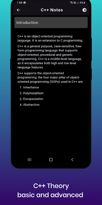 “ C ++ Notes”應用程序具有非常簡單且交互式的UI。這是讓您免費學習C ++編程語言的最佳應用程序。你還在等什麼?立即下載該應用程序,成為C ++編程語言的專家