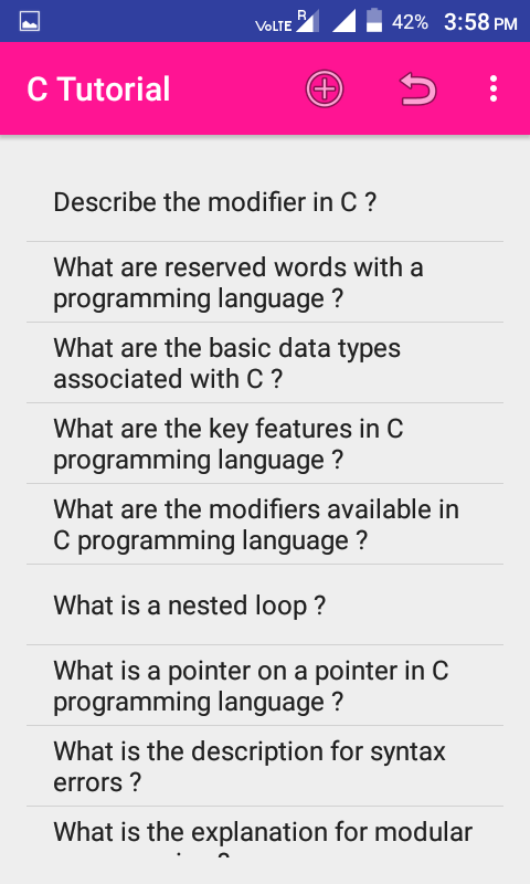 C Tutorial and Programing app is Provide C Tutorial And Basic Programe They Are Interview Question and