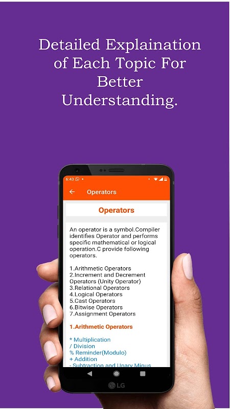 This application is a complete pocketbook to learn C programming language at your own.This application contains: