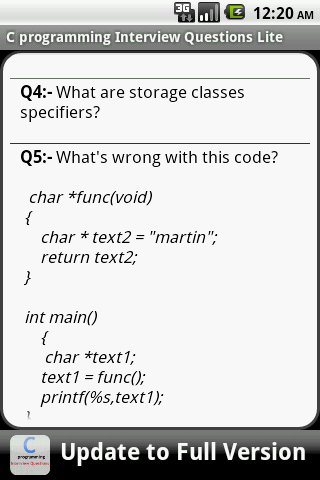 C programming Interview Questions Lite lists frequently asked c questions and also shows the answers.