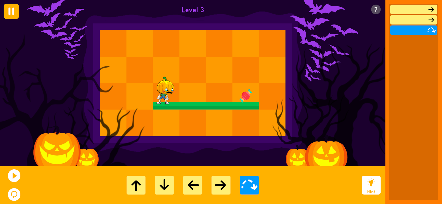 ● 序列是第二種遊戲模式。從序列模式開始,孩子們將不再直接將編碼塊拖到屏幕上,而是將它們拖到側欄上。序列模式向孩子們介紹了這種遊戲風格以及編碼塊從上到下的順序執行。