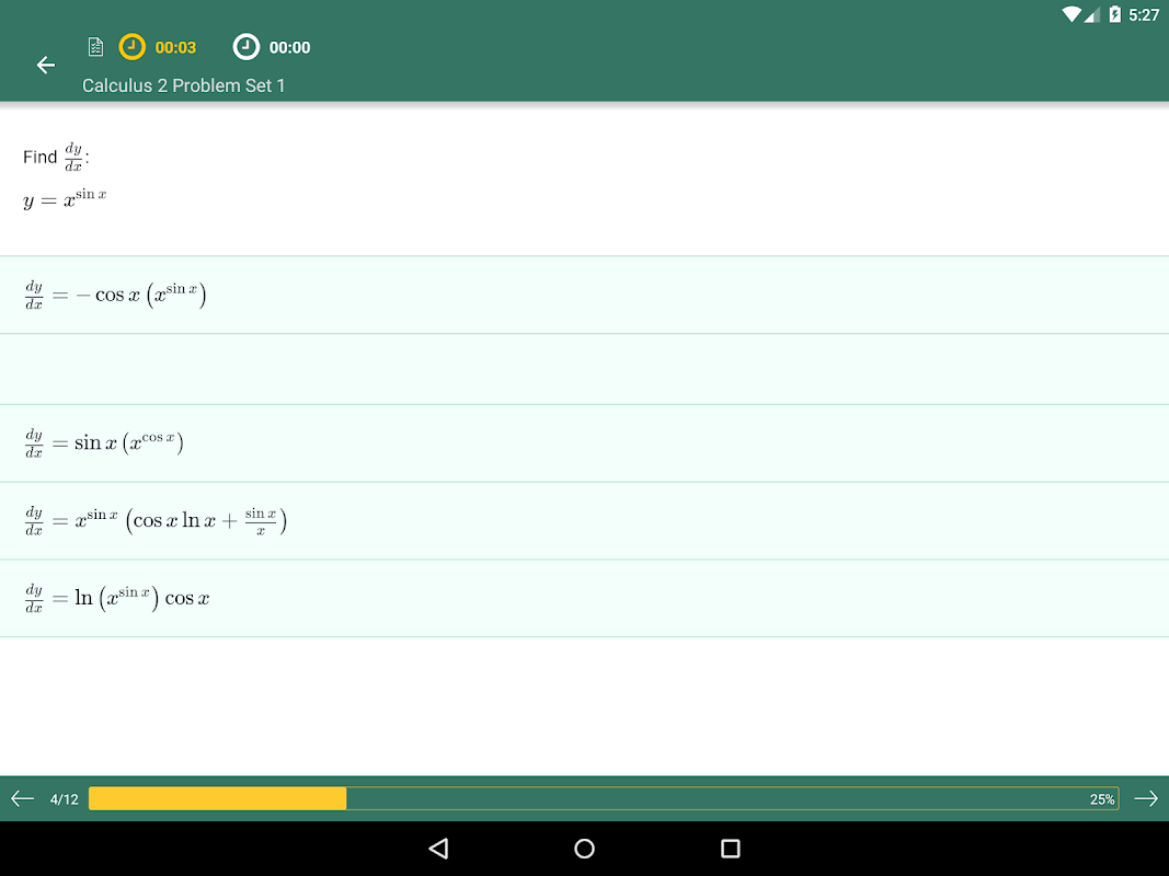 許多學生指出,微積分1具有挑戰性和難學,所以回事微積分2可以是一個可怕的經歷。它並不一定是這樣的!從我們隊打導師微積分2應用程序為Android稍加練習和幫助下,你可以想辦法改善這個問題的理解。該應用程序提供免費的微積分2資源,如實踐檢驗,診斷測試,抽認卡,和這麼多,以幫助建立在主題的信心。我們對Android平台的智能手機和平板電腦的應用程序,您可以根據自己的時間研究和選擇要覆蓋哪些方面。