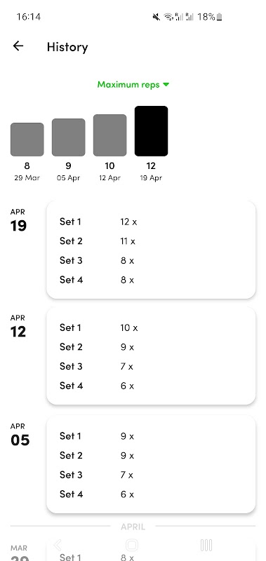 通過跟踪每次鍛煉的組數/代表/重量來衡量您的進步。通過這種方式,您可以有效且有動力地朝著您的目標努力!