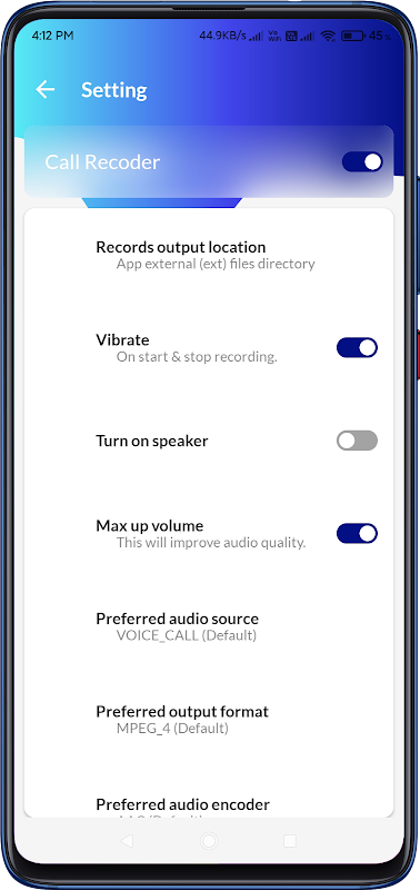 Auto Call Recorder application can be used as a voice recorder and auto call recording. Call Recorder: Automatic Call Recorder can automatically start audio recording when the user receives or make a phone call.