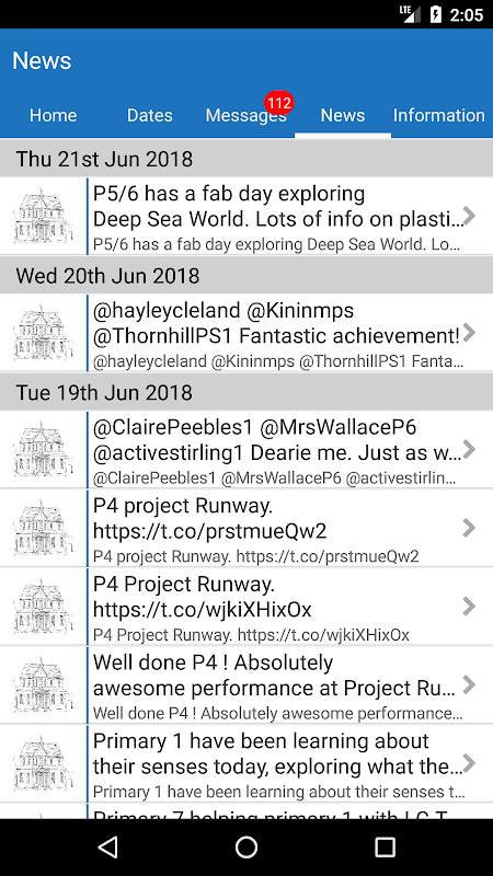 Shows all the latest stories from your school or organisation. If you tap on any news item you will be able to see more detail.