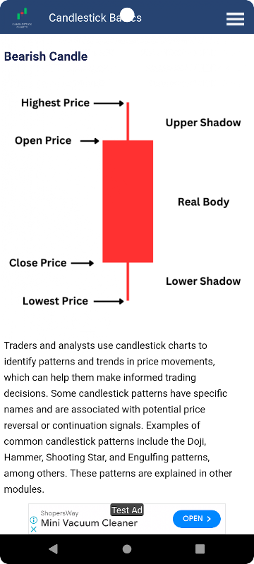 透過蠟燭圖解釋深入交易世界!該應用程式簡化了燭台圖案和蠟燭詳細信息,幫助您以易於理解的方式了解市場走勢。