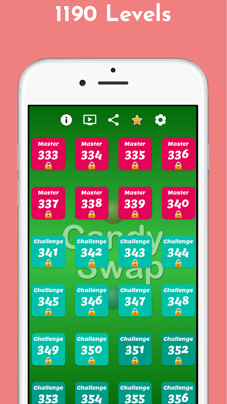- Tap two candies one after the other to swap their positions such that maximum candies get linked in a single move.