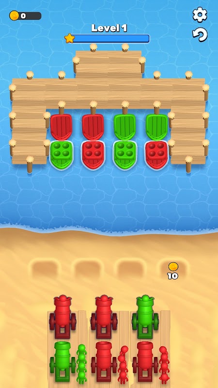 Cannon Sort 是一款驚心動魄的快節奏遊戲,您可以控制色彩繽紛的大砲,將人們發射到匹配的船上!你的任務很簡單:將大砲中的人的顏色與船隻相匹配,將每艘船裝滿。一旦一艘船滿載,它就會起航,為下一艘船騰出空間。但先別放鬆-下一波人即將到來!憑藉充滿活力的視覺效果、動態的遊戲玩法和不斷增加的挑戰,《Cannon Sort》將讓您在管理混亂並保持船隻移動時保持專注。