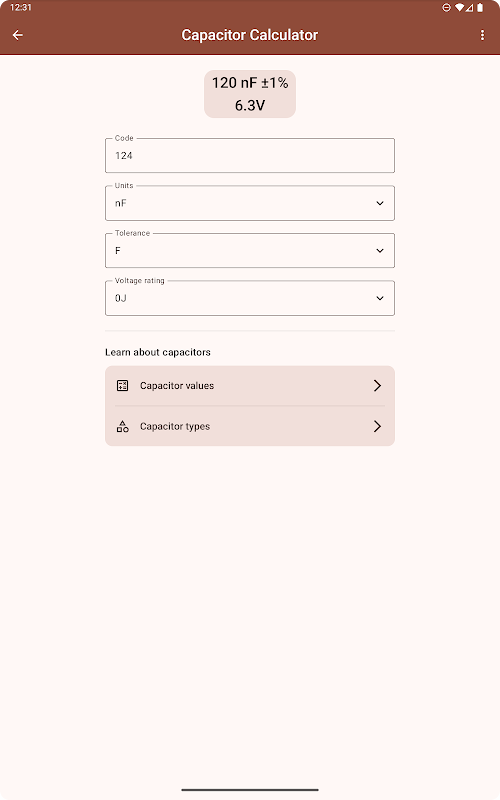 • 內建資訊頁面- 存取各種類型電容器和編碼標準的應用程式內指南。非常適合快速參考或學習。