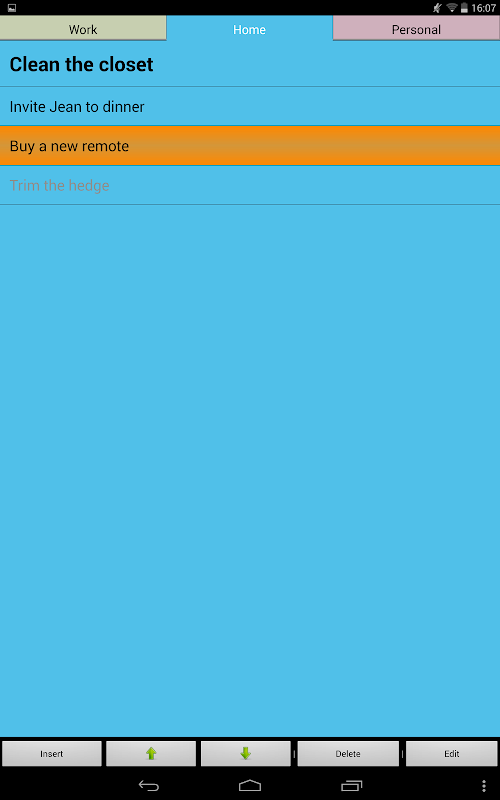 - When you have some spare time (or you have reserved the time for self improvement), open the application, choose a category (if at work, then probably work, if at home than home or family,...) and do the FIRST thing on the list as long as you can or until it is finished. Do not try to do the second or third, because you feel like it or it is easier! Do the first one.