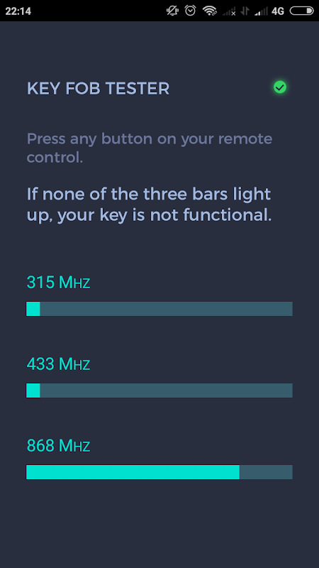 這個程序允許你檢查遙控無線電transmitters-汽車遙控鑰匙,車庫開門器等。您可以通過之前的檢查它自己的電池更換或訪問鎖匠節省時間和金錢。