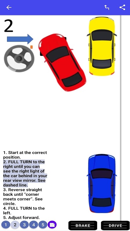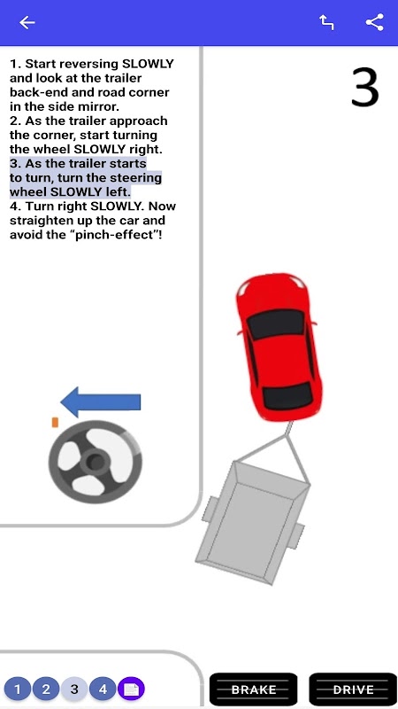 這個應用程序為您提供瞭如何在您可能不會每天都遇到但需要處理的情況下如何駕駛汽車的快速指南。交互式模型將汽車、拖車、方向盤、箭頭和符號、文本和按鈕等動畫逐步組合在一起。動畫在每個步驟中都有文字解釋,並使用底部的按鈕將您的注意力引導到您選擇的重要步驟上。如果您在道路左側行駛,也有一部分模型。
