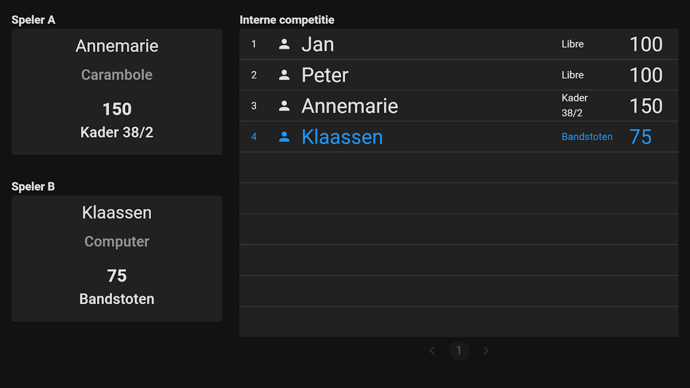 De scorebord weergave heeft nu een submenu als toevoeging gekregen. Wat voorheen de tellijst naar voren bracht, is nu vervangen met een x aantal opties die erg handig kunnen zijn tijdens het verloop van de wedstrijd. Zo kan je met dit nieuwe submenu de (vernieuwde) tellijst benaderen, spelers omdraaien, de partij herstarten en/of opslaan.