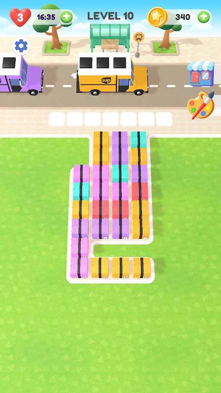 準備好與 Cargo Jam 一起開始驚心動魄的益智冒險吧!扮演忙碌的倉庫經理的角色,你的敏捷思維和配色技巧將受到終極考驗。在這款引人入勝的手機遊戲中,您將面對一個充滿色彩繽紛的貨箱的網格,堆得滿滿的。挑戰?配對並點擊與隊列中第一輛卡車顏色相符的三個盒子,將其送上路以及時交貨。但要小心!下排的盒子被鎖定到位,直到上面的盒子被清除為止,為你的每一步行動添加一層令人興奮的策略。