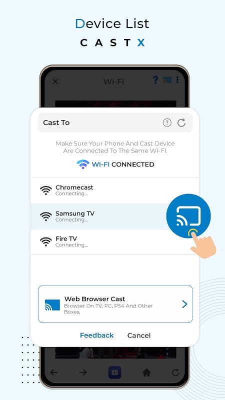 從手機流式傳輸到電視非常依賴於 Wi-Fi 網絡和流媒體設備。請確保您的手機和流媒體設備連接到相同的 Wi-Fi。流媒體設備支持媒體格式。如果您在流式傳輸到電視或投射到 Chromecast 時遇到問題,您可以嘗試重新啟動 Wi-Fi 路由器和流式傳輸設備。如果您對 CastX 有任何建議或問題,請隨時通過 [email protected] 與我們聯繫