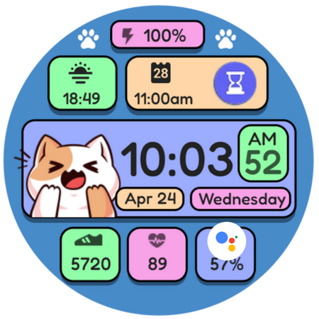 適用於 Wear OS 的貓咪主題錶盤。