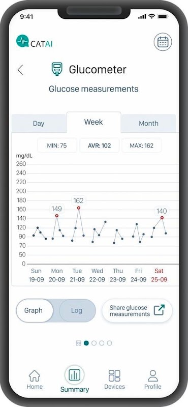CatAI 數字健康應用程序為您的數字健康信息提供集中和安全的提取工具,它使您的醫療保健提供者、您的家庭成員或您的護理人員可以訪問您的數據。醫療參數和數據將安全保密地傳輸。
