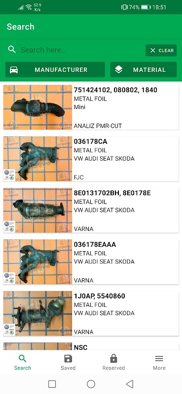 搜索很容易,並且可以通過代碼,製造商,材料類型和照片來完成。
