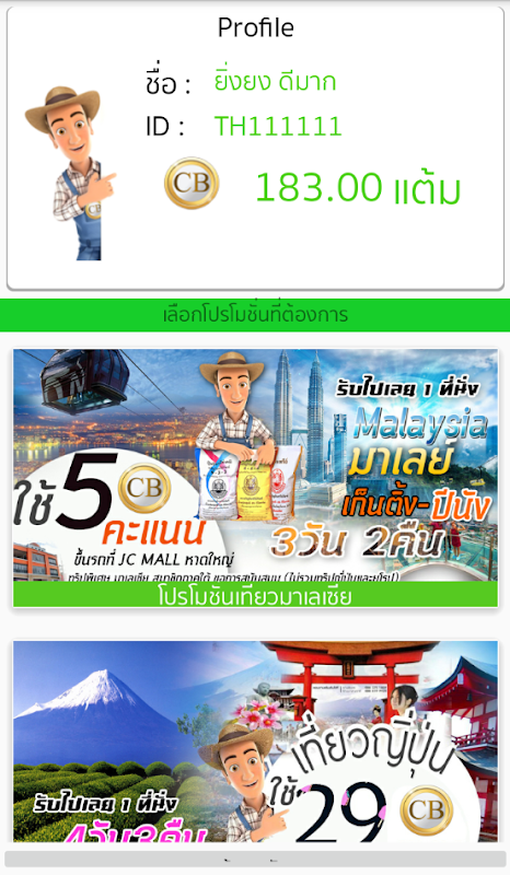 แอปพลิเคชั่นสำหรับสมาชิก J&C เพื่อใช้ในการแลกโปรโมชั่นเงินสด