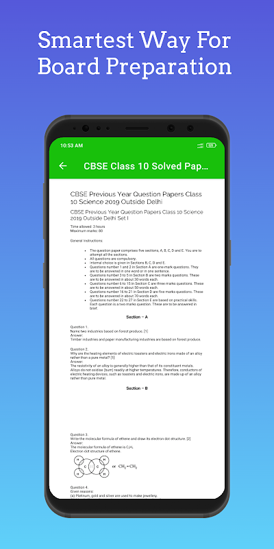 為 CBSE 第 10 級董事會考試加強準備和修改整個教學大綱的最明智方法是通過此應用程序,它為您提供過去 10 年已解決的前幾年試題。