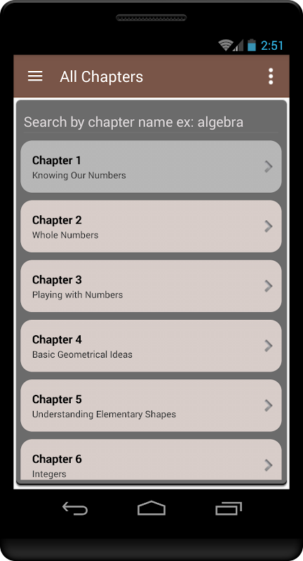 One can navigate to all chapters by clicking on the menu button (3 horizontal lines on top of the screen) or swipe from left of the screen to see the navigation drawer and select appropriate options. There is also an option to bookmark chapters for easy access when you navigate through chapters list and see the content of the specific chapter.