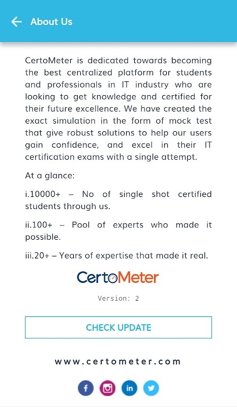 Certometer是印度IT培訓和認證考試的頂級潛在培訓機構。 Certometer旨在培養學生的競爭態度,以及良好的學術基礎,優質的教學和個人關注作為其標誌。今天,我們是一個成熟的領導學院,不斷引導學生實現他們的目標。我們的學院創建了一個精彩的學習材料,可以幫助學生輕鬆學習所有競爭性考試的課程內容,並使他們獲得良好的分數。我們著名的院係是同類中最好的,並取得了很好的成績。我們熱衷於提供最好的教育,並為學生創造一個具體的基礎,以熟練的方式發展他們的知識,並確保他們的成功。在Certometer,我們專注於為學生的成功奠定堅實的知識和概念基礎,並為準備競爭性考試提供一個絕佳的平台。我們為學生提供的最佳學術支持和個人護理幫助他們實現職業目標。我們高素質,經驗最豐富的院系致力於學生的全面成功。無論您的背景如何,Certometer都為您提供了強大的準備平台。我們的重點是培養每個學生強大的學術基礎,解決問題的能力,並提供有競爭力的環境。對於我們的學生,我們傳授以價值為基礎的職業教育,豐富的資源和個人關注。 Certometer除了僅僅是一個輔導中心外,還通過專家指導和無與倫比的學習材料,專注於學生的全面發展。