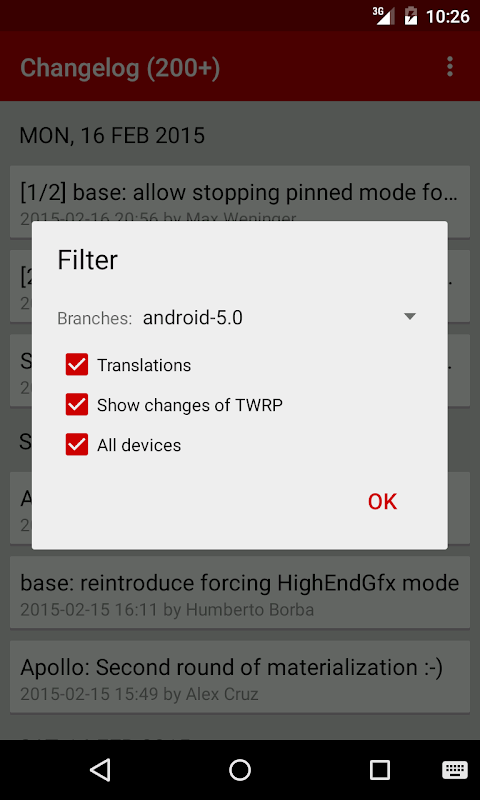 This changelog shows every merged change on the OmniROM/LineageOS Gerrit instance after your current build time. Excellent choice for self-builders and users of custom ROMs who want to follow the development process closely.