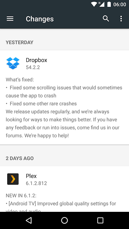 變化可以讓你保持跟踪的應用程序更新和更新日誌。