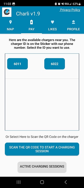 Charli Android應用程序將允許Charli電動汽車充電站(EVCS)的用戶獲得實時狀態和到附近或最喜愛的EVCS的方向。該應用程序還允許註冊的Charli用戶通過藍牙低排放(BLE)和EVCS發射BLE授權充電會話。該應用程序還允許註冊的Charli用戶使用EVCS上的QR碼來授權充電會話。此應用程序允許已註冊的Charli用戶監視和管理其用戶帳戶設置。