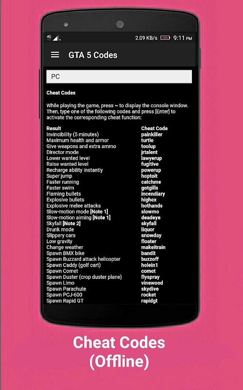 Cheatbook為您提供所需的備忘代碼和備忘單,以釋放您喜愛的遊戲的某些隱藏功能,並以更輕鬆的方式完成許多有趣的工作。使用該應用程序非常簡單。從左側拉抽屜,然後從指定類別中選擇遊戲,向下滾動直到找到您的平台(PC,PS4,PS3,XBox One,XBox 360,Wii)。