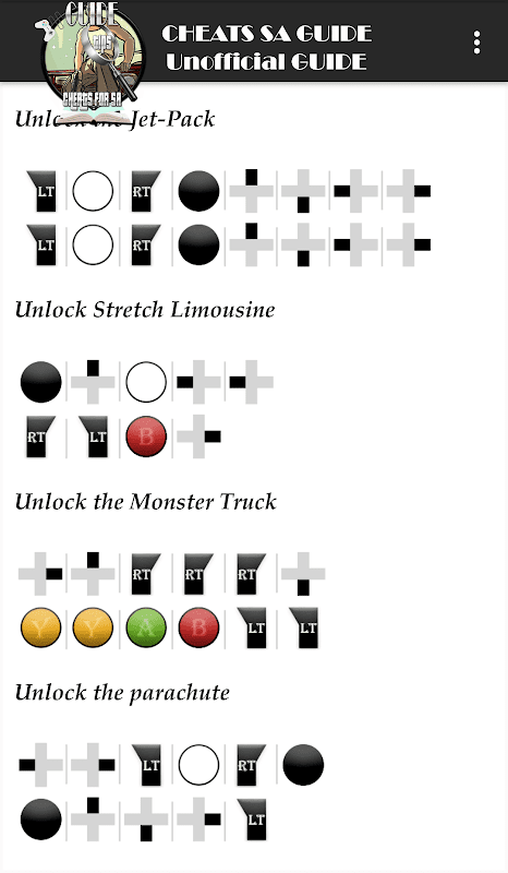 Cheats For SA (Unofficial Guide) is a very simple and reliable application that contains the best codes and tips for SA.