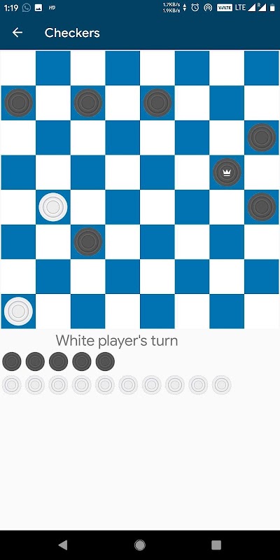 Checkers is played by two opponents, on opposite sides of the game-board. One player has the dark pieces, the other has the light pieces. The white player begins the game and has to make a move, afterwards both players alternate taking turns. A player may not move an opponent's piece. A move consists of moving a piece diagonally to an adjacent unoccupied square. If the adjacent square contains an opponent's piece, and the square immediately beyond it is vacant, the piece may be captured by jumping over it.